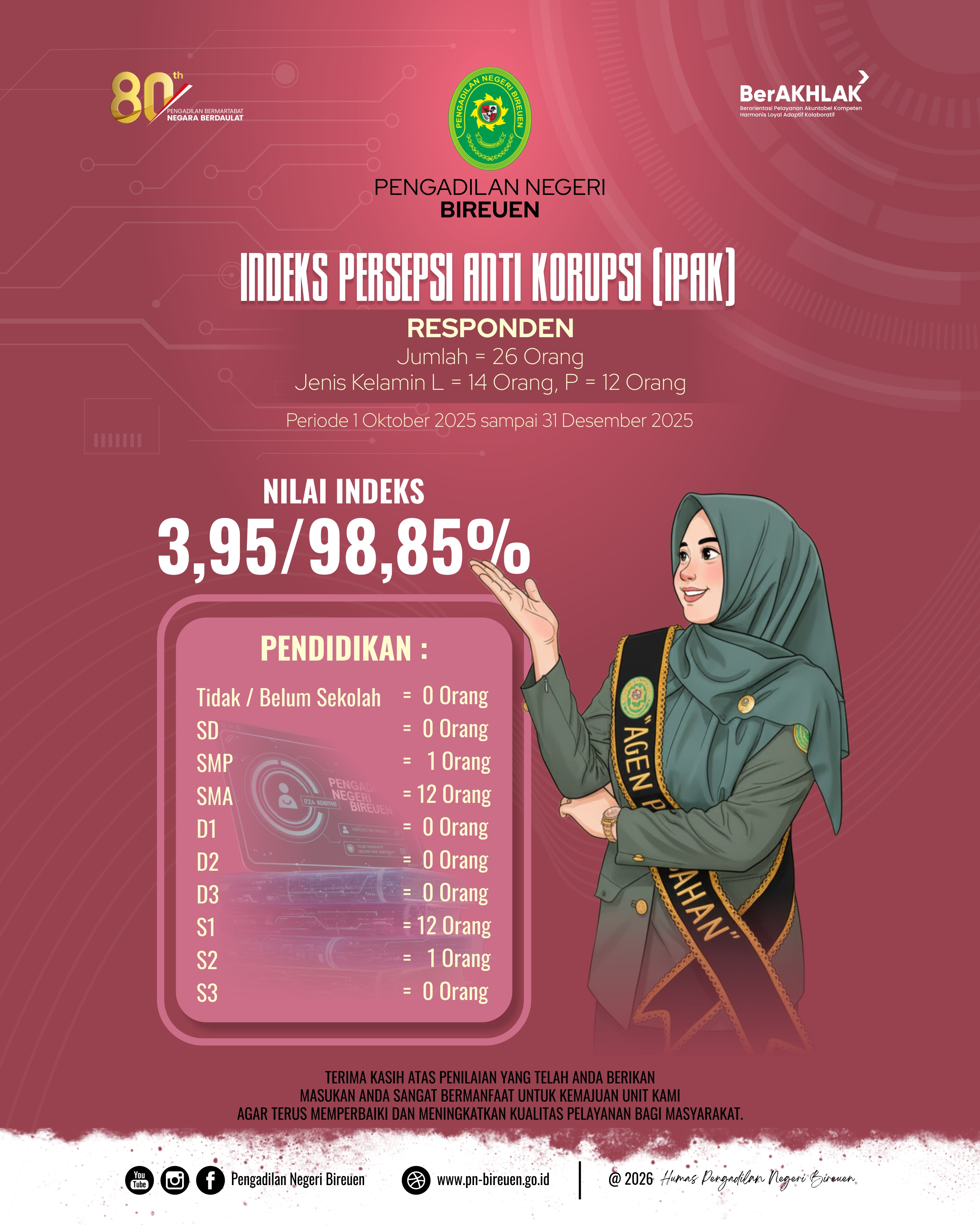 Bireuen - Humas/PTIP : Pengadilan Negeri Bireuen telah melaksanakan Kegiatan Penandatanganan Pakta Integritas dan Komitmen Bersama pada hari Senin, 5 Januari 2026 yang dipimpin langsung oleh Bapak Raden Eka Pramanca Cahyo